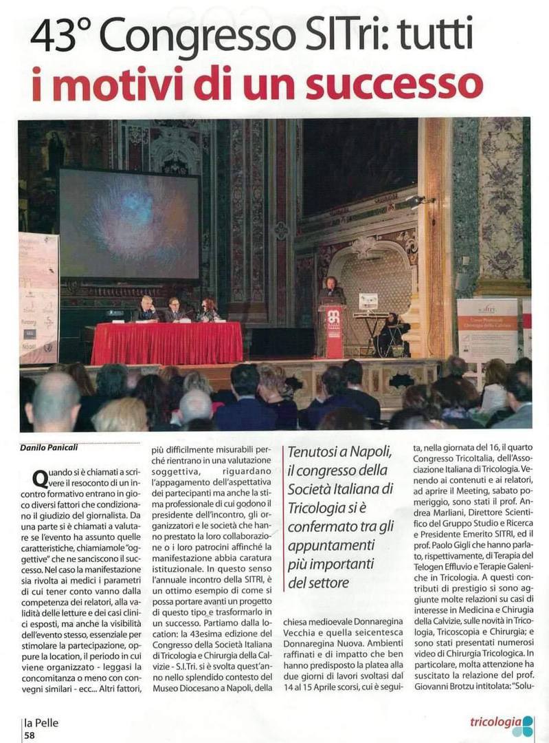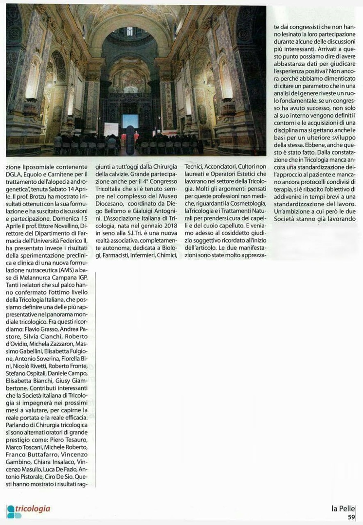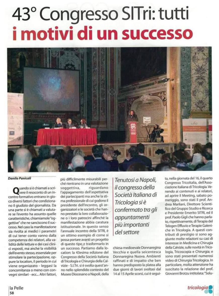 Il dott. Soverina è stato citato dalla prestigiosa rivista "La Pelle" in un articolo riguardante il 43° Congresso della Società Italiana di Tricologia